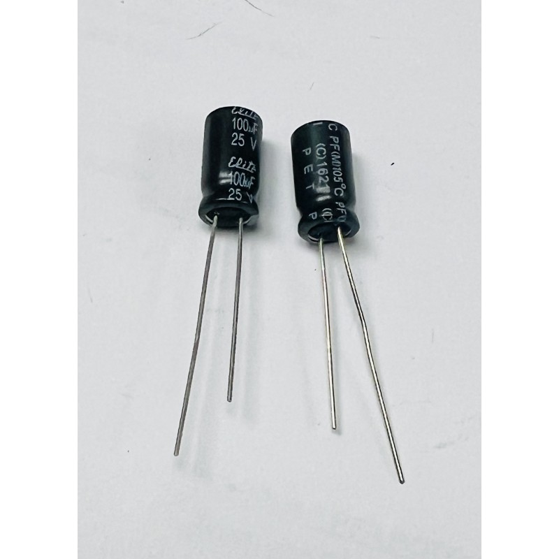 Condensatore Elettrolitico 100uF 25V 105°C Radiale 6x12mm Elite (2 Pezzi)